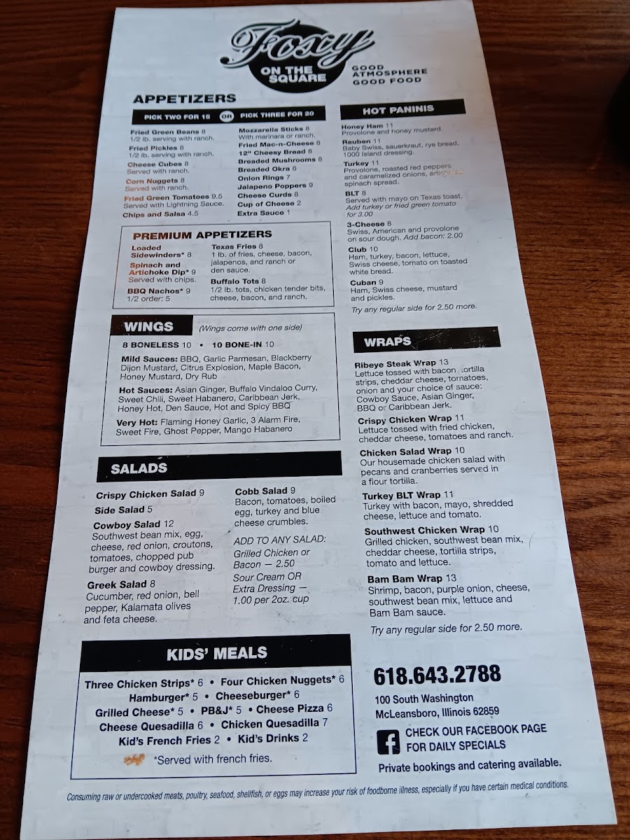 Foxy offers a straightforward yet inviting menu centered around classic American comfort food with a casual twist. Whether you're stopping by for a satisfying lunch or a laid-back dinner, you’ll find a variety of hearty options that feel familiar and thoughtfully prepared.